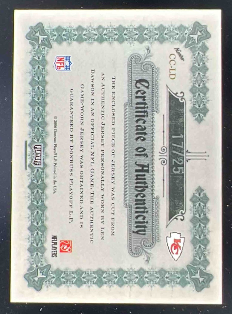 2006 National Treasures Canton Classics Materials Jumbo Jerseys Len Dawson /25