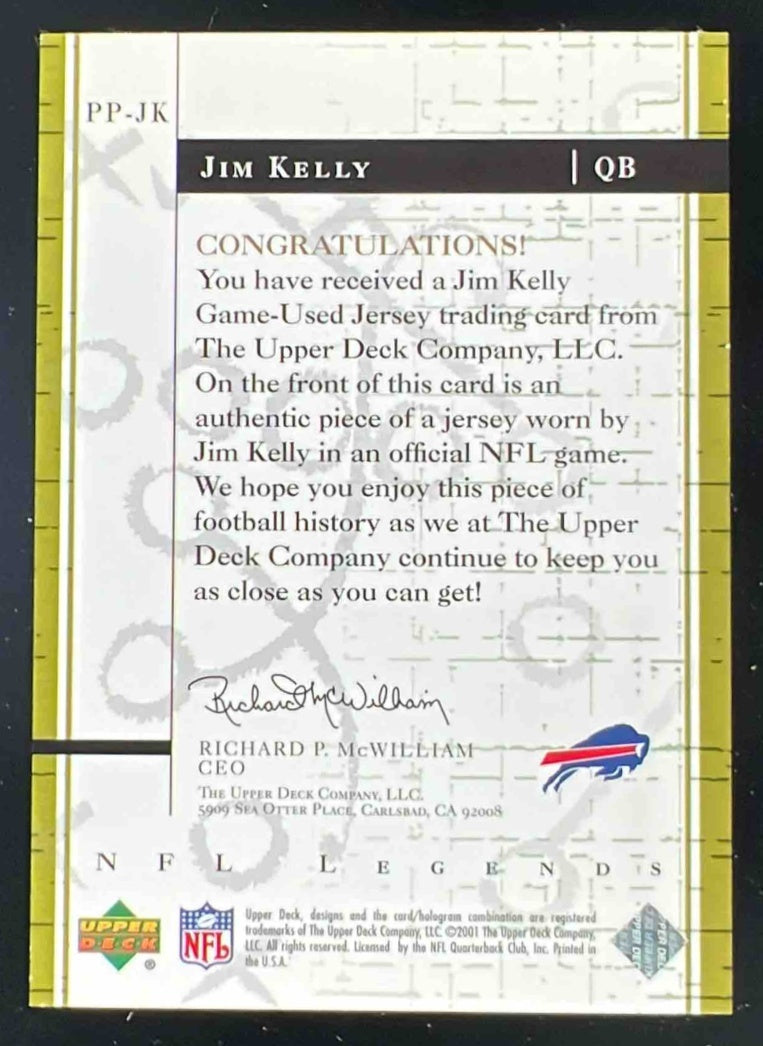 2001 Upper Deck Legends Past Patterns Jerseys #PP-JK Jim Kelly