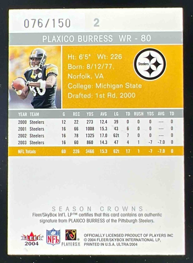 2004 Fleer Ultra Season Crowns Autographs #2 Plaxico Burress Auto /150