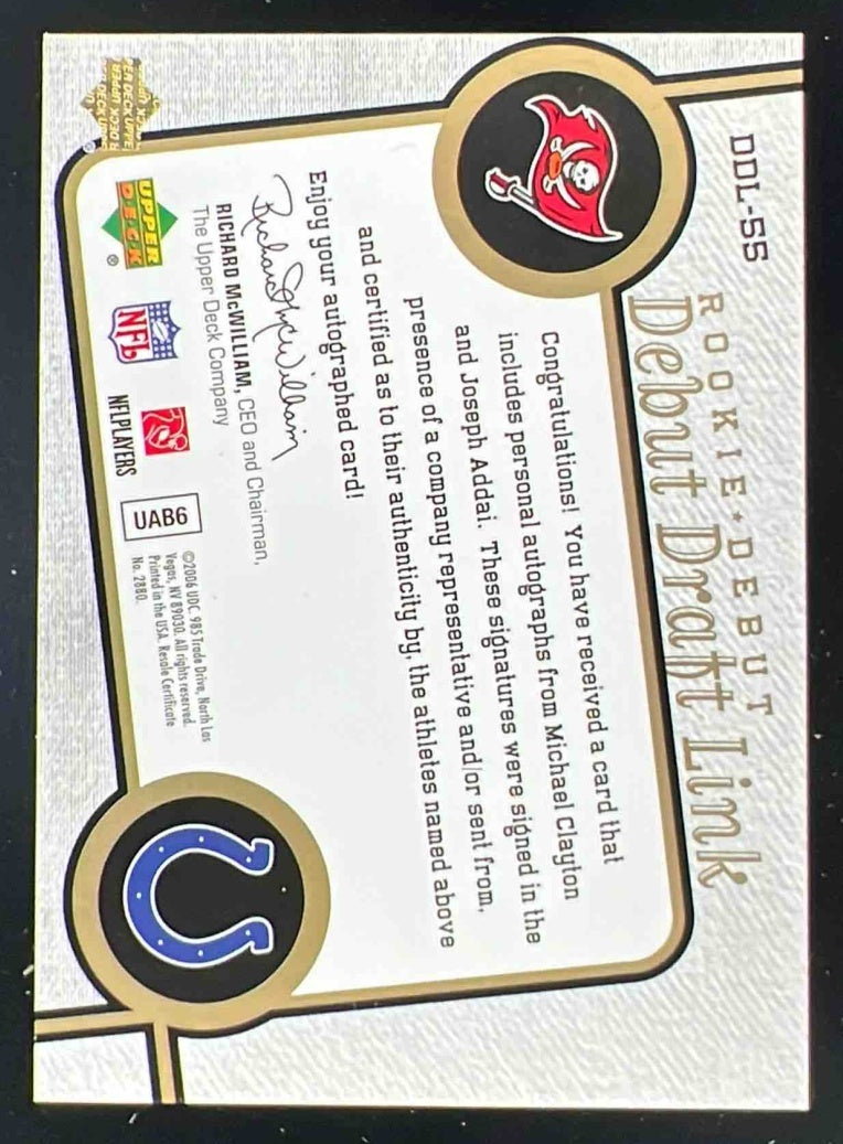 2006 Upper Deck Rookie Debut Draft Link #DDL55 Michael Clayton Joseph Addai Auto