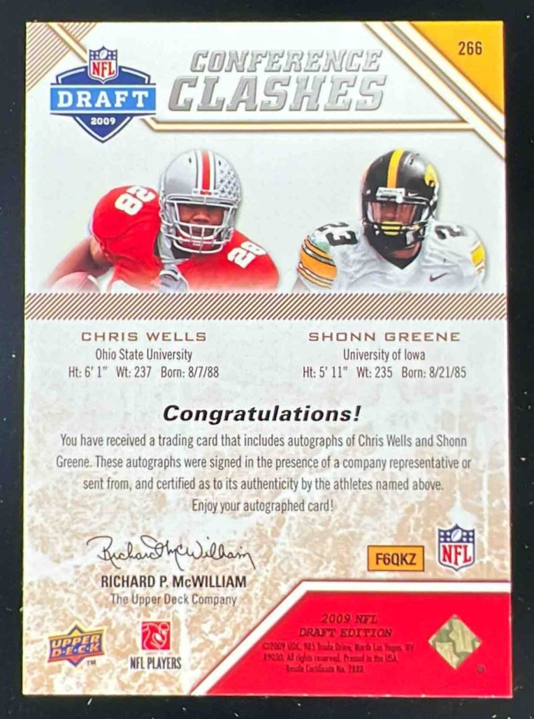 2009 Upper Deck Draft Edition Dual Auto Gold #266 Chris Wells Shonn Greene /50