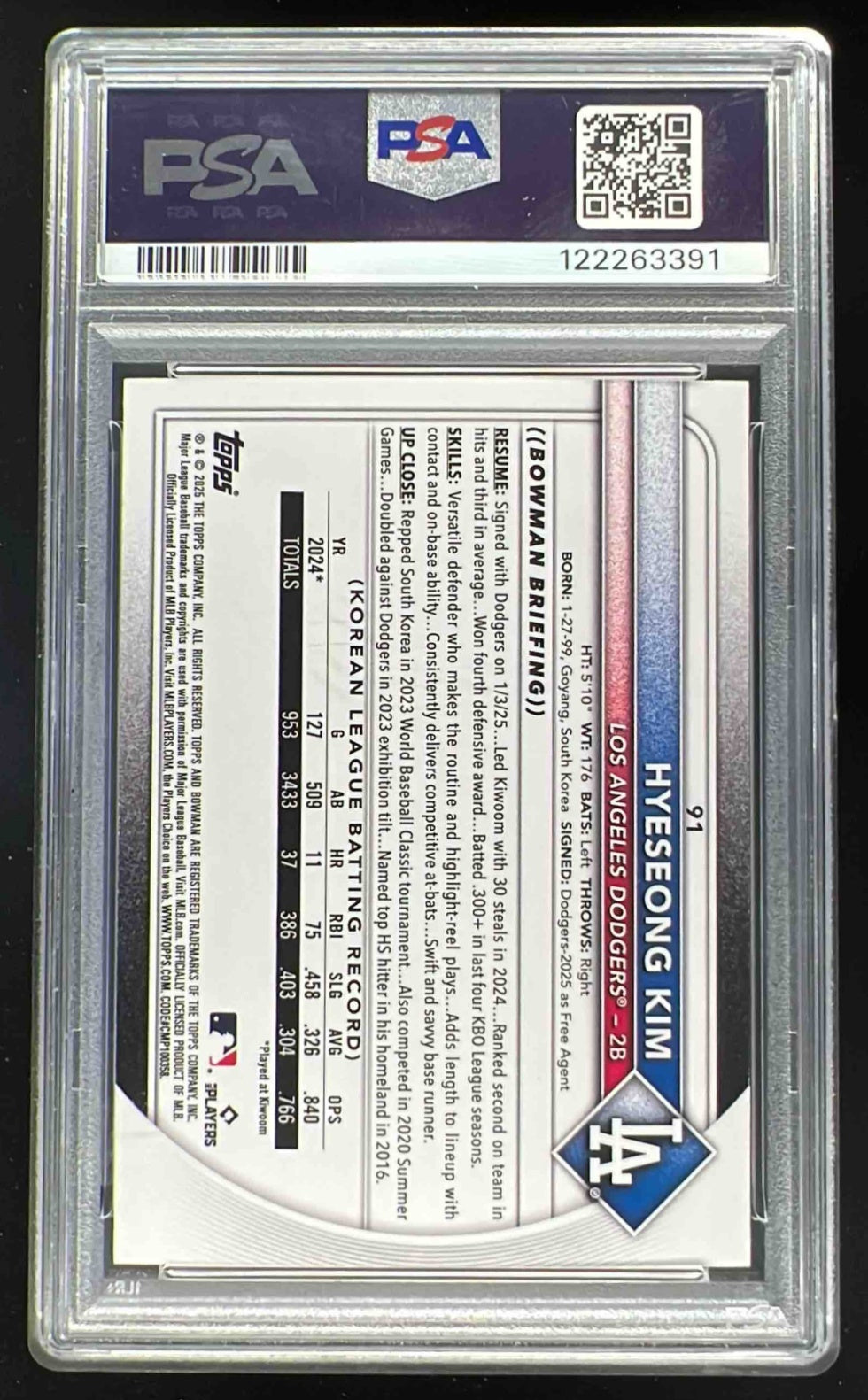 2025 Bowman Black Pattern Border #91 Hyeseong Kim RC /10 PSA 8