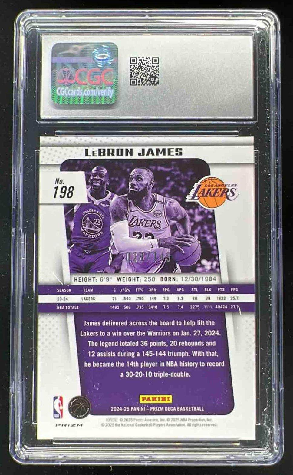 2024-25 Panini Prizm Deca Blue Prizms #198 LeBron James /149 CGC 10