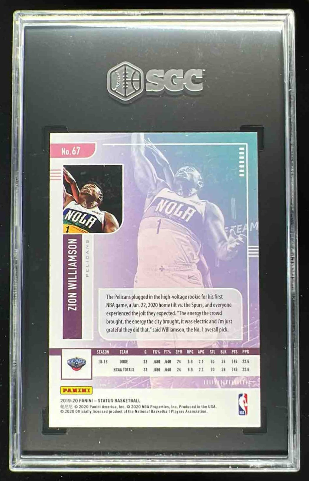 2019-20 Panini Status #67 Zion Williamson RC SGC 9.5
