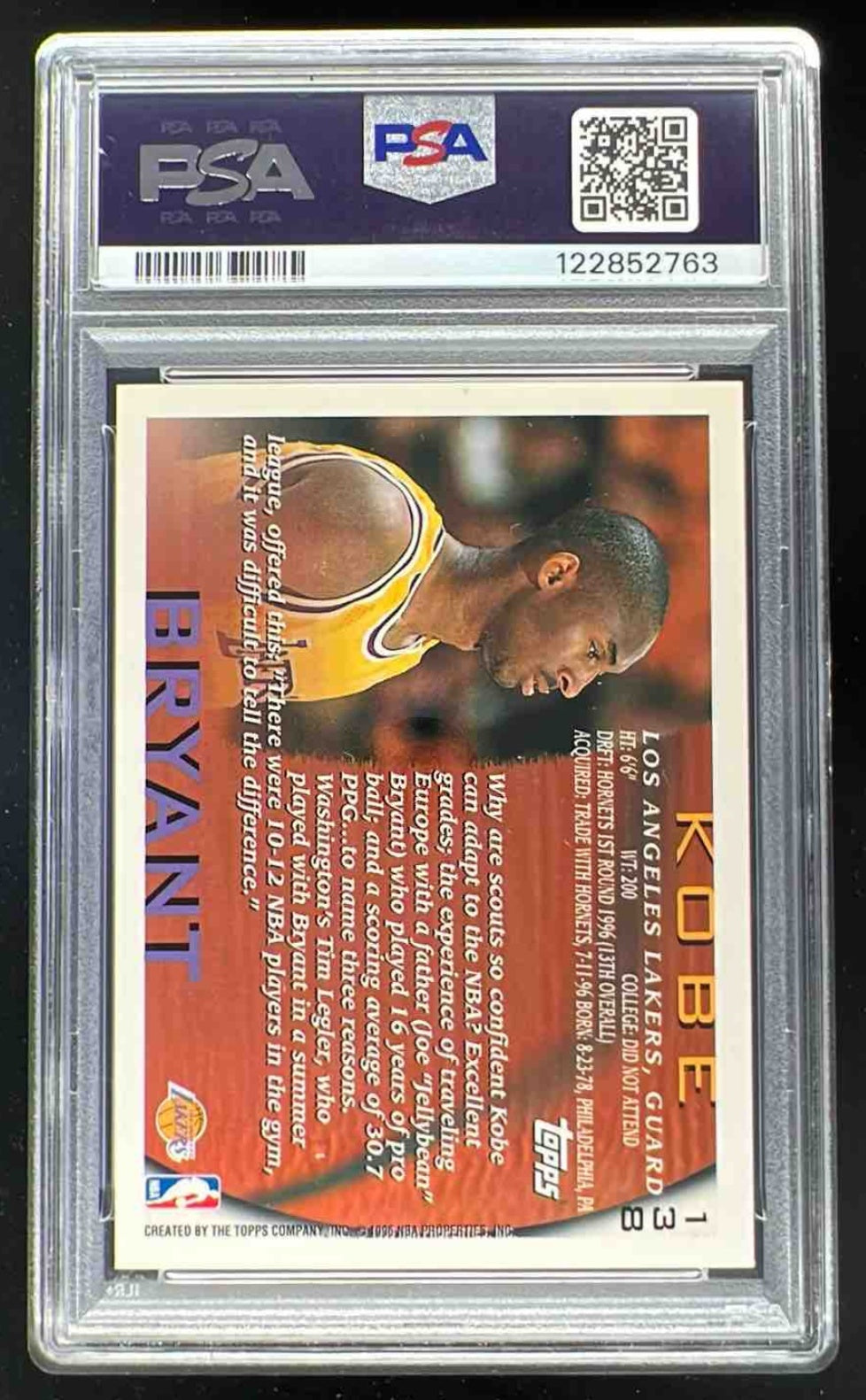 1996-97 Topps #138 Kobe Bryant RC PSA 8
