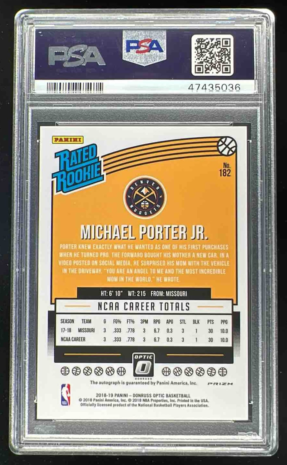 2018-19 Donruss Optic Rated Rookies Purple #182 Michael Porter Jr. RC Auto PSA 9