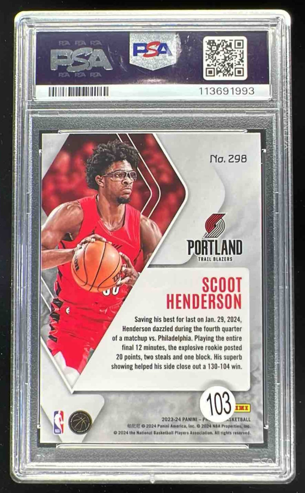 2023-24 Panini Phoenix Teal Lazer #298 Scoot Henderson RC PSA 10