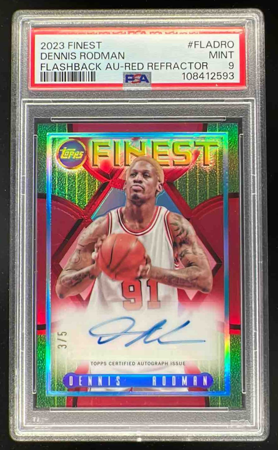 2023-24 Topps Finest Flashback Red Refractors Dennis Rodman Auto /5 PSA 9