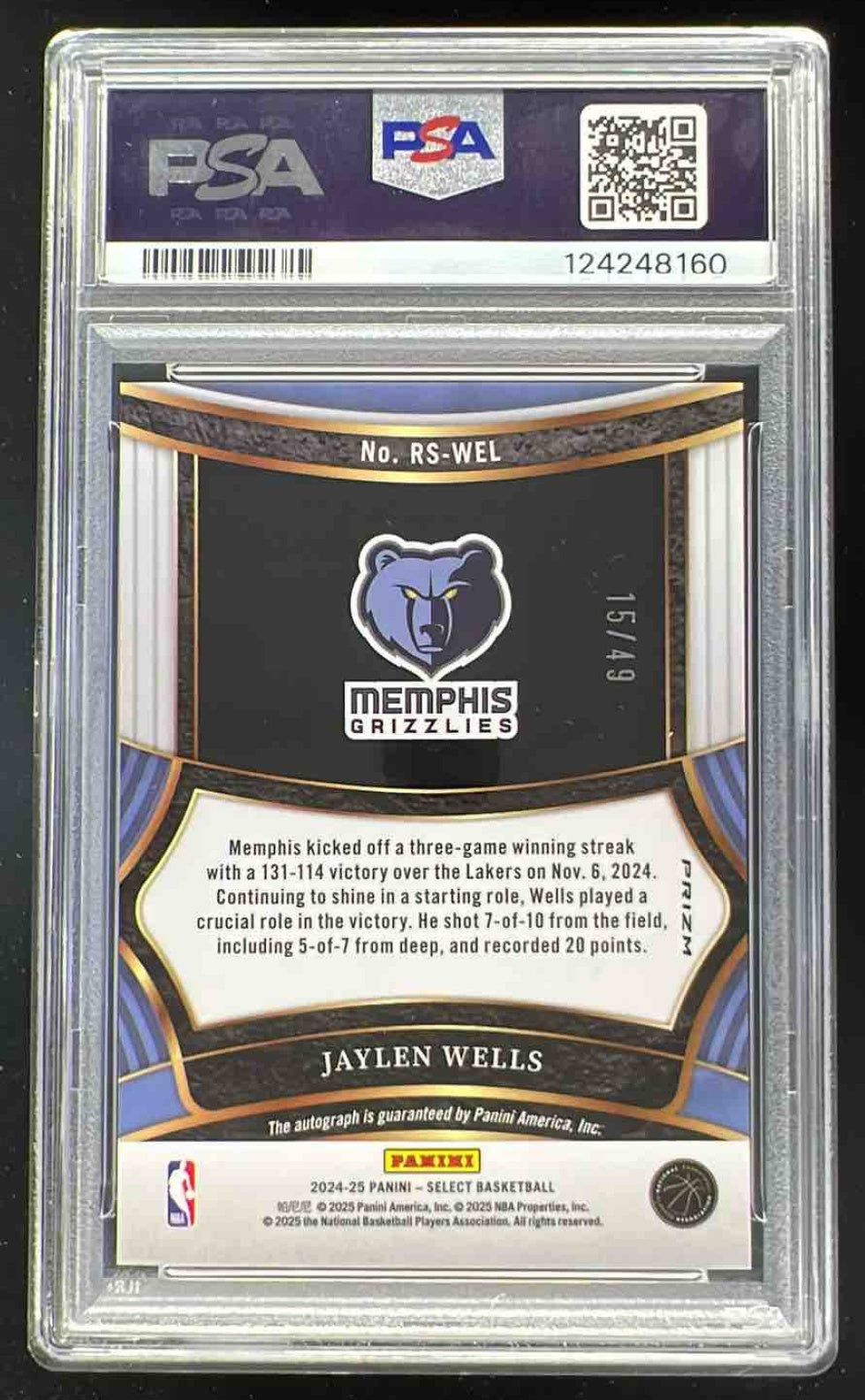 2024-25 Select Rookie Signatures Blue Prizm #RS-WEL Jaylen Wells Auto /49 PSA 10