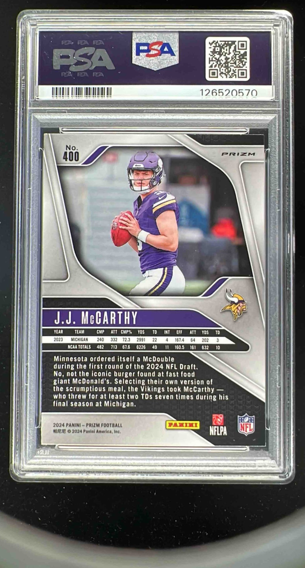 2024 Panini Prizm Green Wave Prizm #400 J.J. McCarthy RC PSA 9