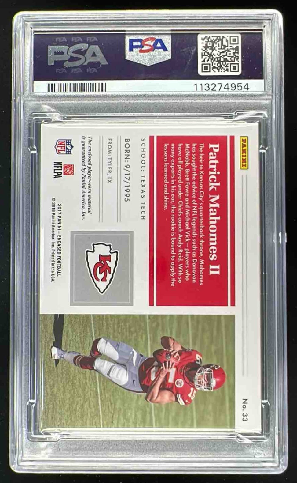 2017 Encased Substantial Rookie Swatches #33 Patrick Mahomes II RC /49 PSA 5