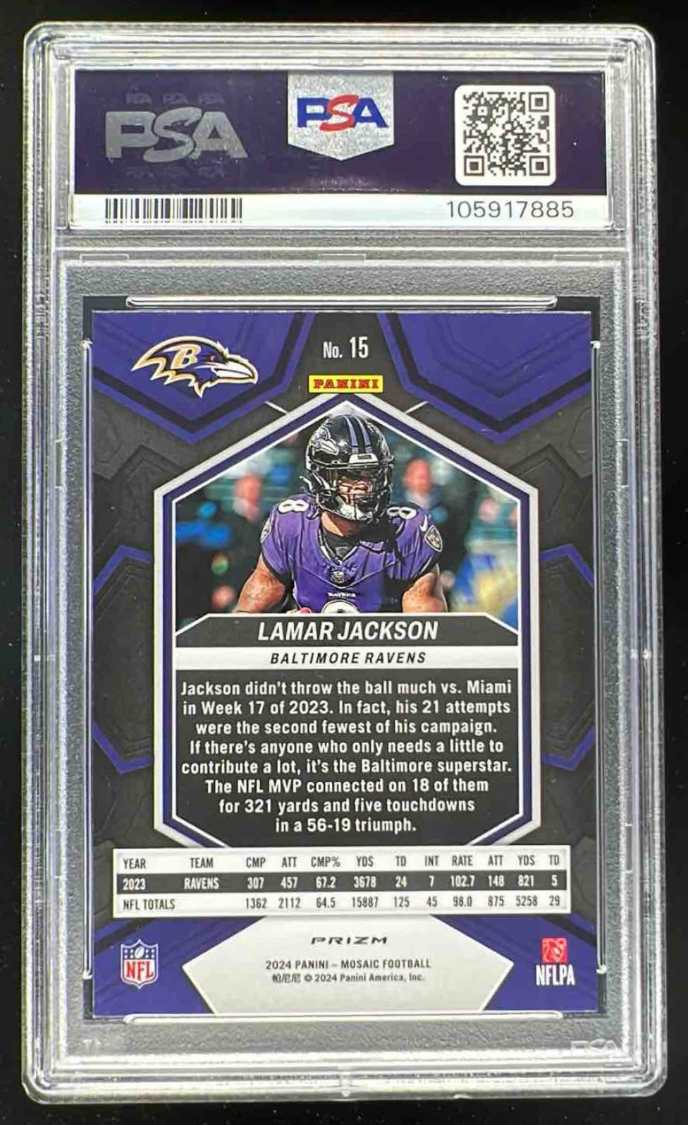 2024 Panini Mosaic Camo Pink Prizm #15 Lamar Jackson PSA 9