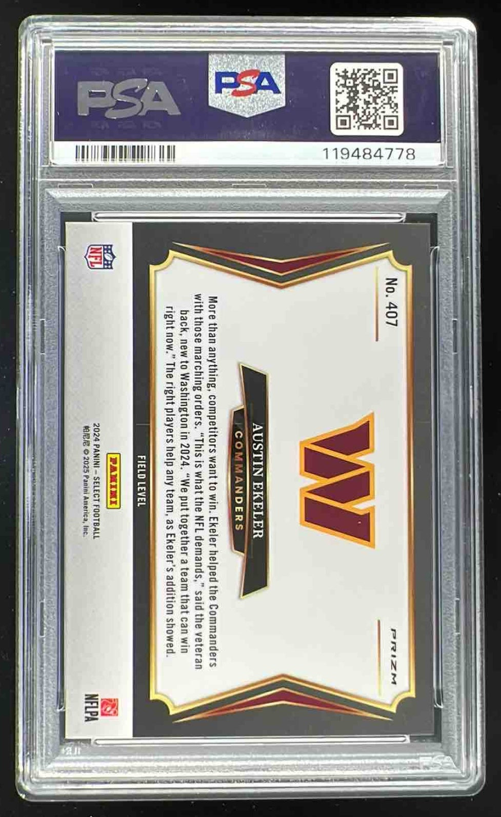 2024 Panini Select Field Tiger Prizm #407 Austin Ekeler PSA 10