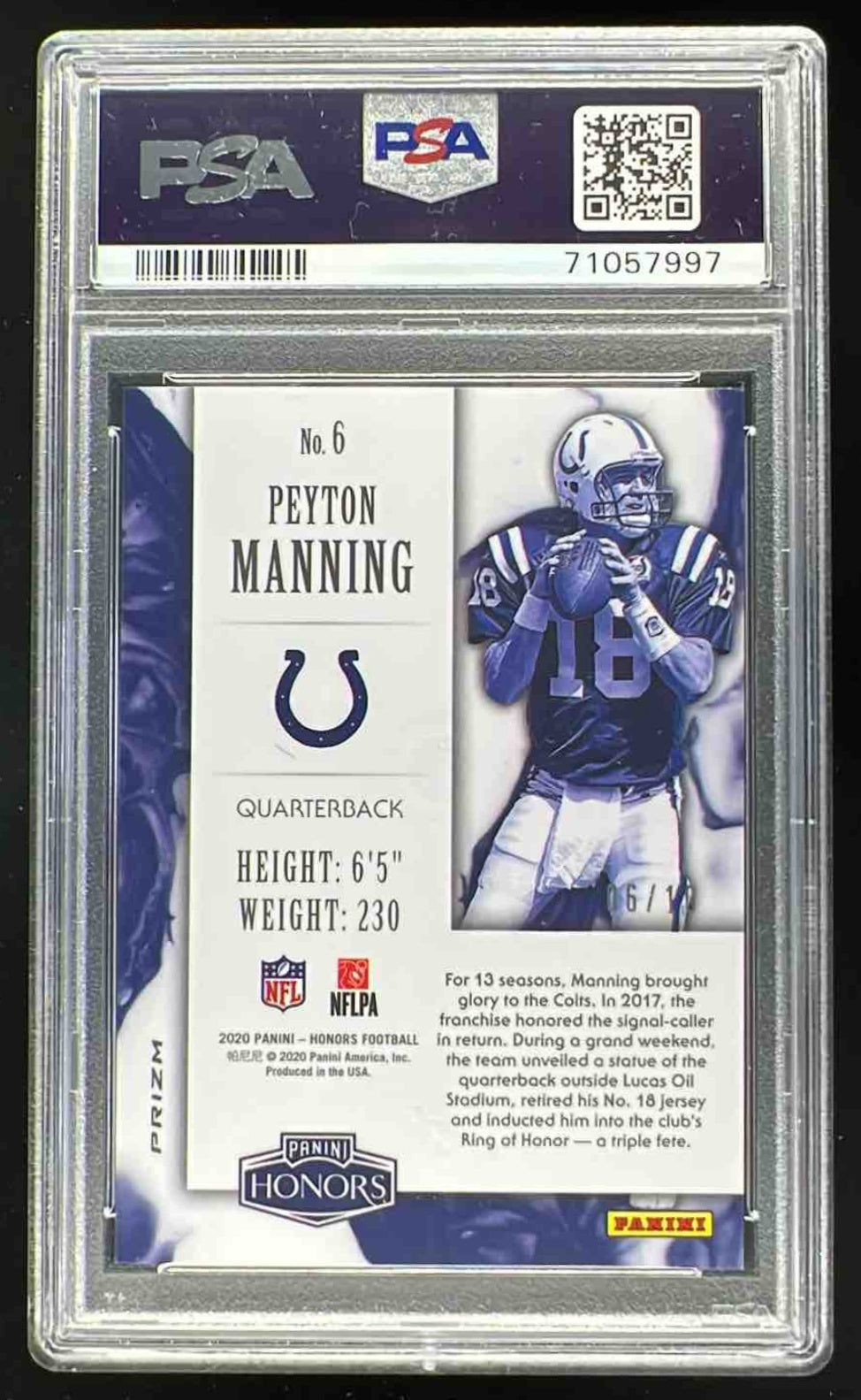 2020 Panini Honors Red #6 Peyton Manning /10 PSA 10