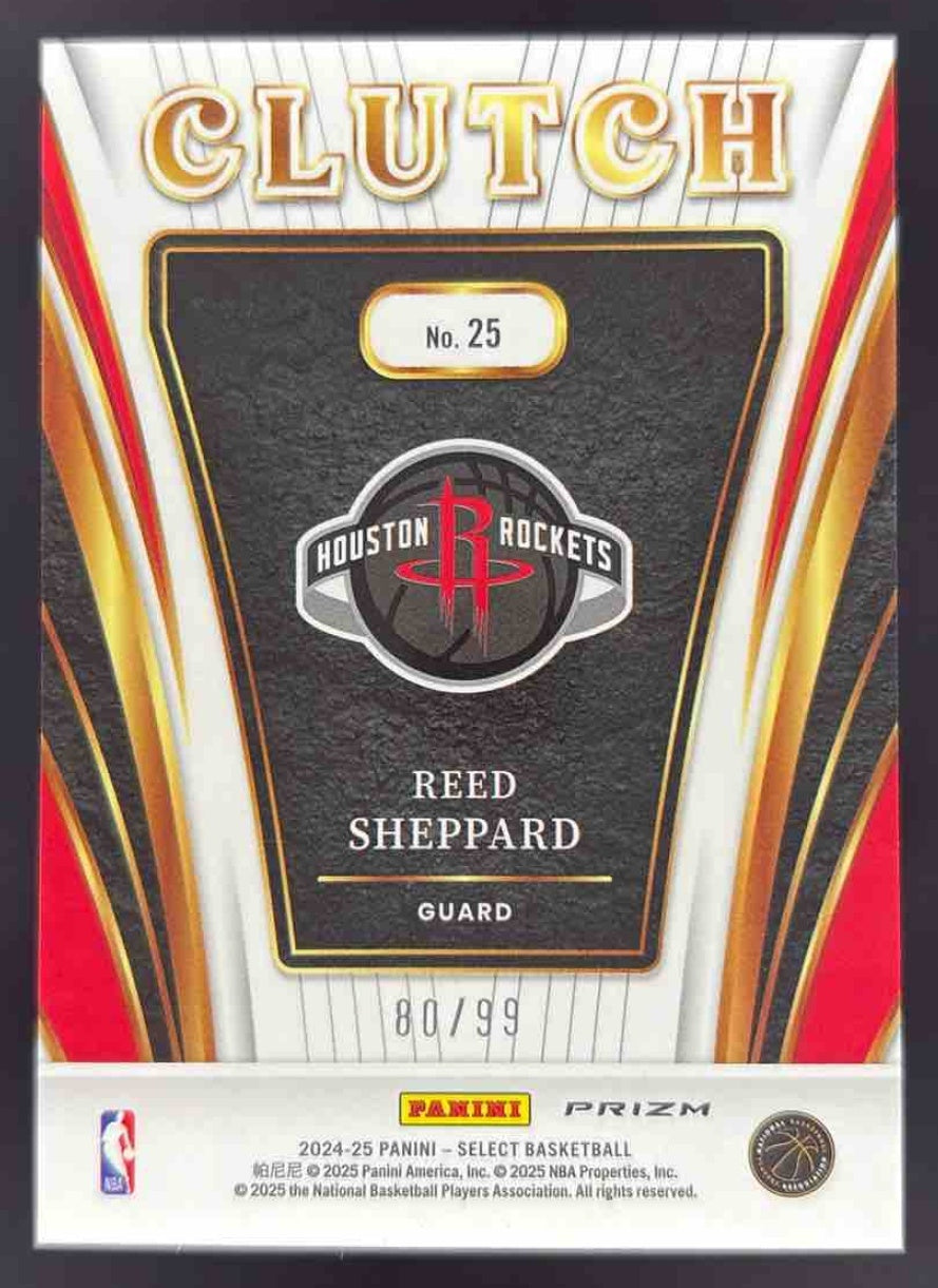 2024-25 Panini Select Clutch Red Prizm #25 Reed Sheppard RC /99
