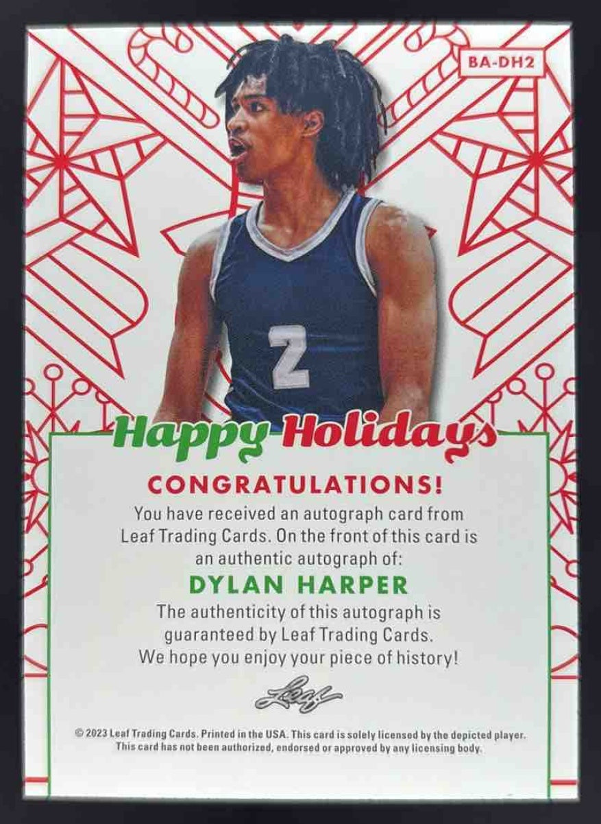2023 Leaf Happy Holidays Autograph #BA-DH2 Dylan Harper Auto
