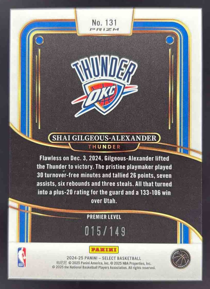 2024-25 Panini Select Premier White Prizm #131 Shai Gilgeous-Alexander /149
