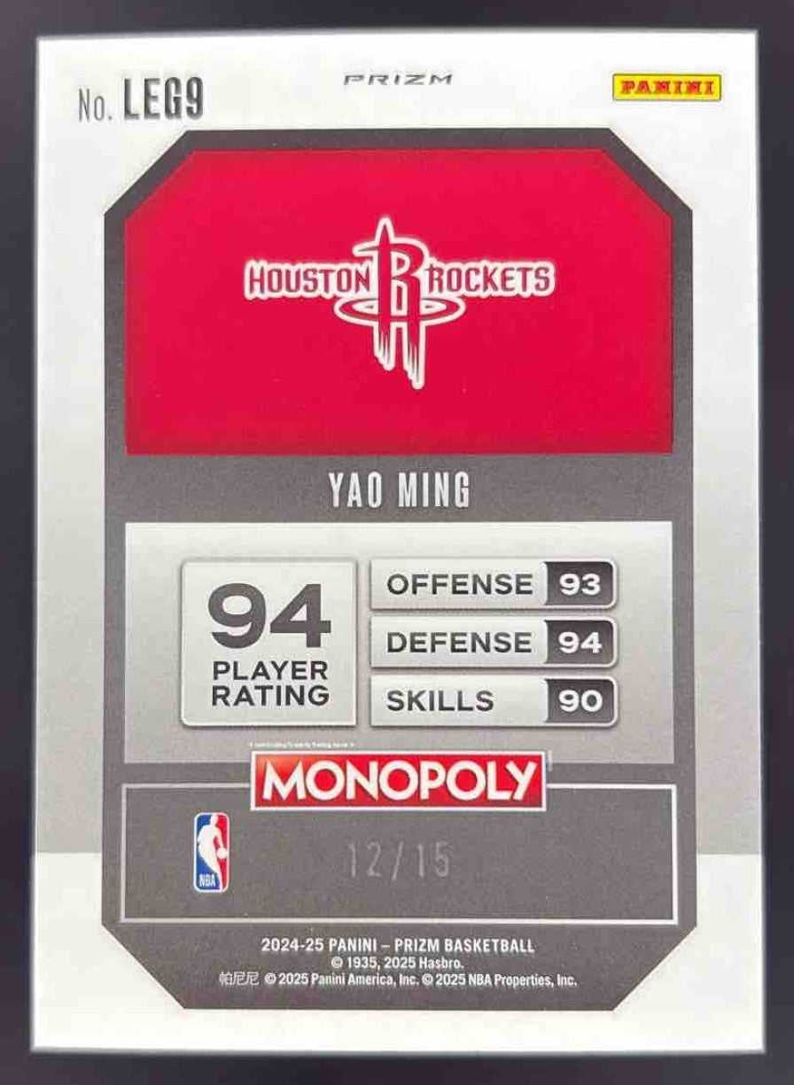 2024-25 Panini Prizm Monopoly Legends Boardwalk Blue Prizm #LEG9 Yao Ming /15