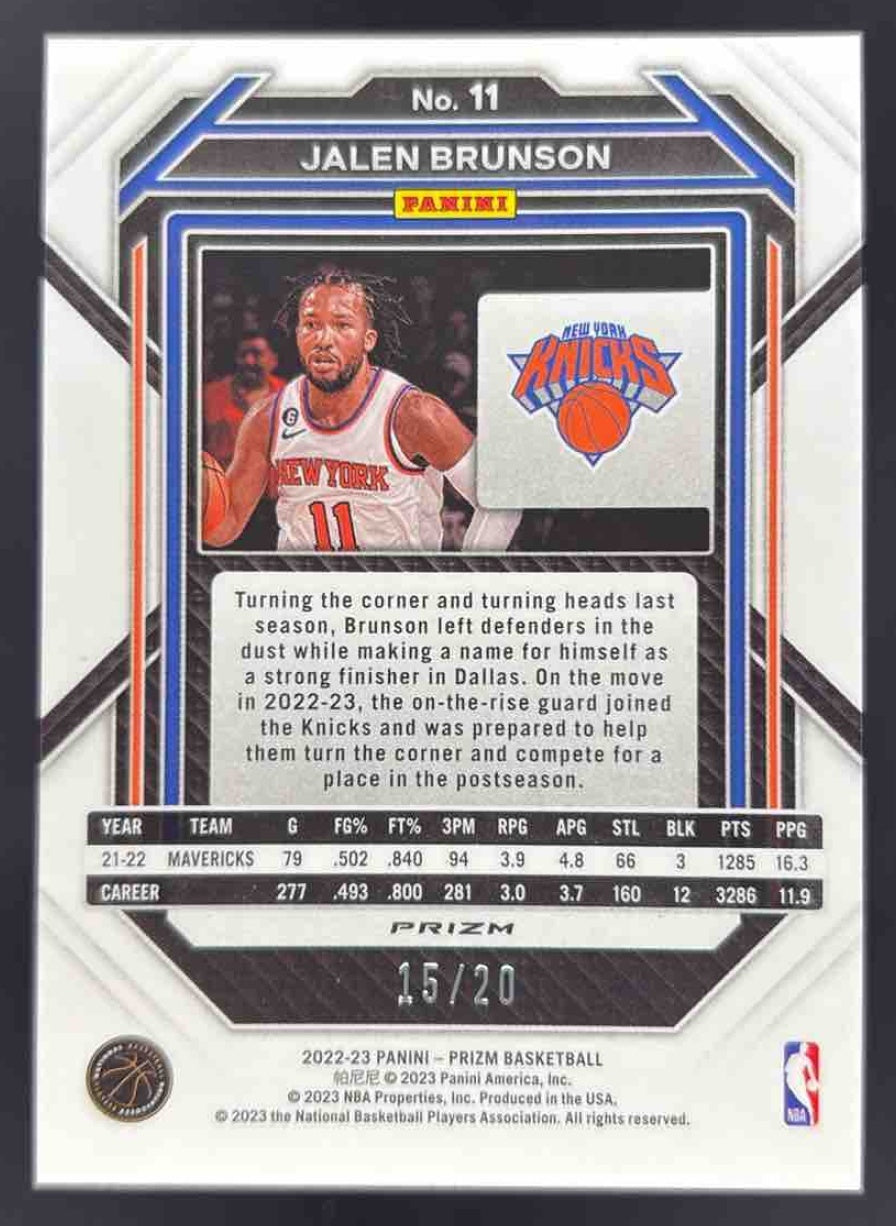 2022-23 Panini Prizm Prizms Fast Break Bronze #11 Jalen Brunson /20