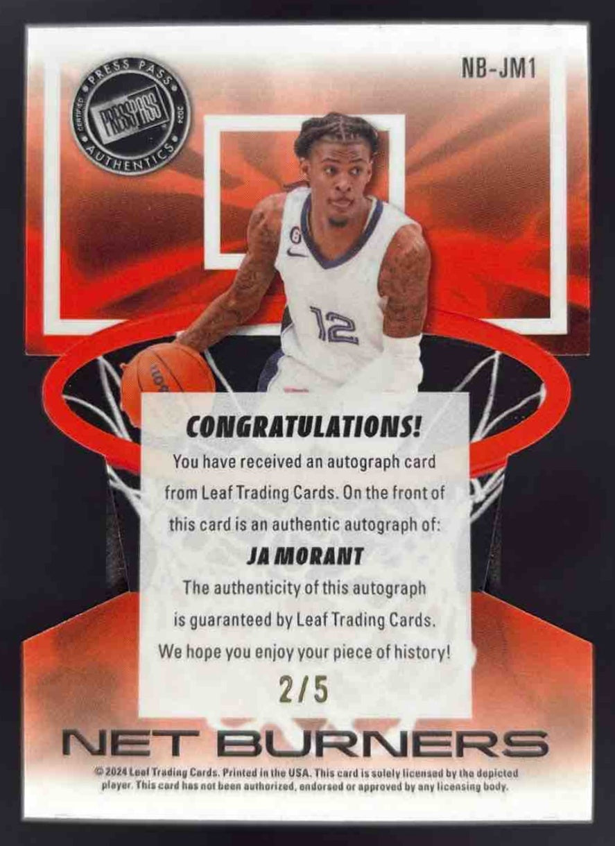 2024 Leaf Collective Net Burners Black Crystal #NB-JM1 Ja Morant Auto /5