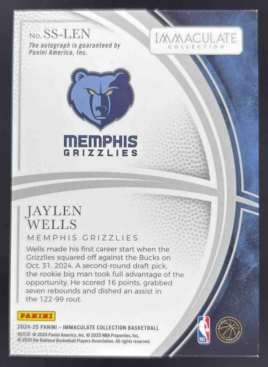 2024-25 Immaculate Collection Shadowbox Signatures #32 Jaylen Wells RC Auto /99