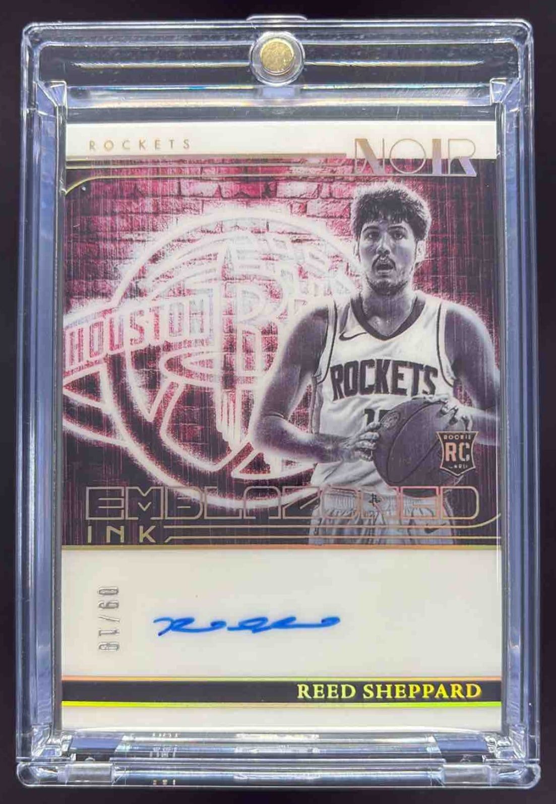 2024 Panini Noir Emblazoned Ink Holo Gold #2 Reed Sheppard Auto /10