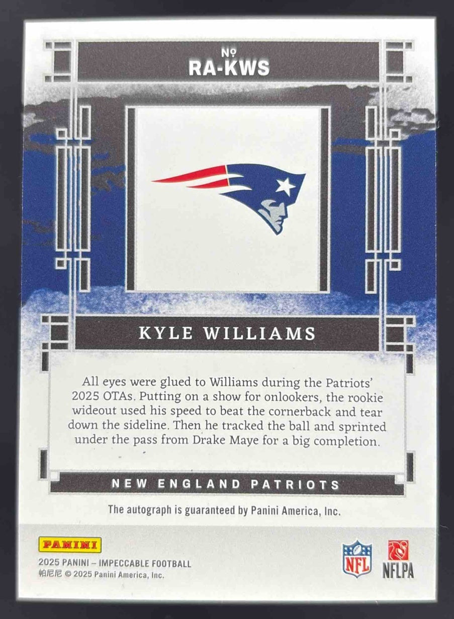 2025 Panini Impeccable Rookie Autographs Red #13 Kyle Williams RC Auto /75
