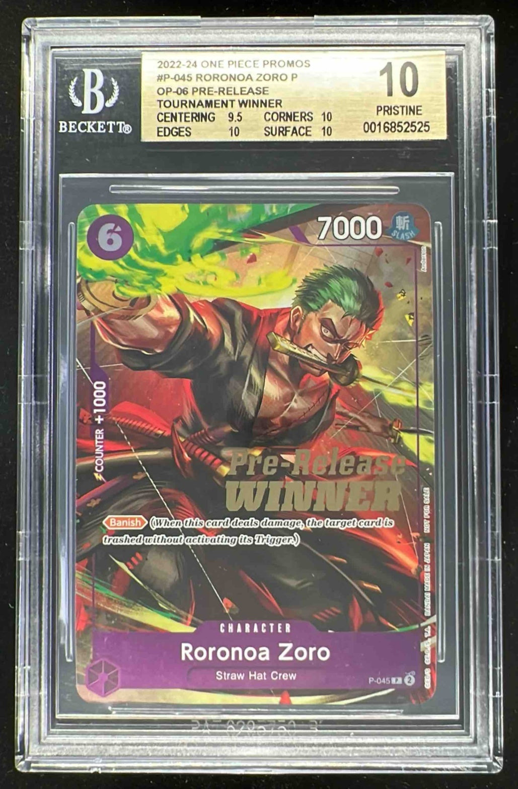 2022 One Piece Promos Pre Release #P-045 Roronoa Zoro P BGS 10