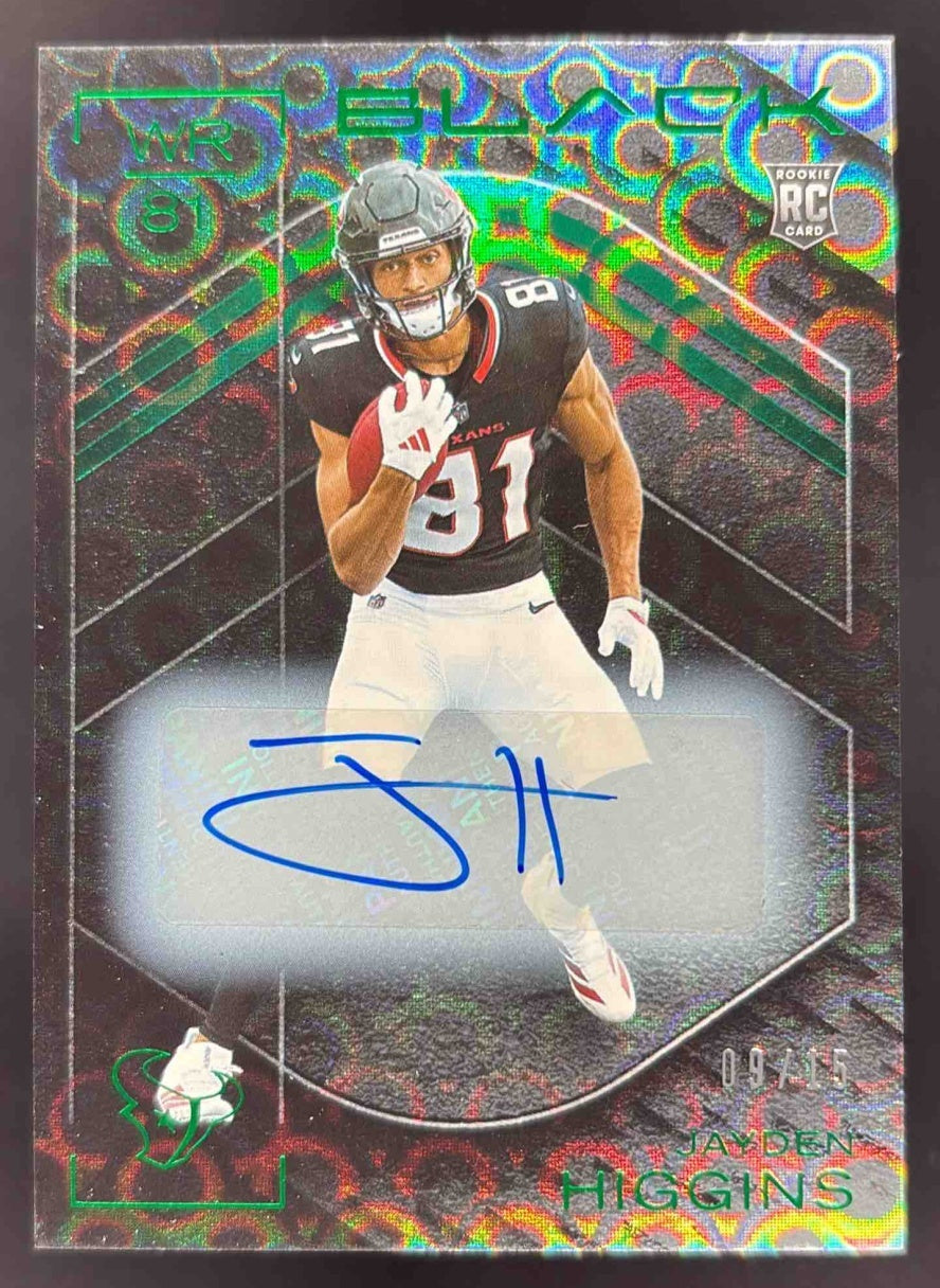 2025 Panini Black Rookies Autographs Emerald #105 Jayden Higgins RC Auto /15