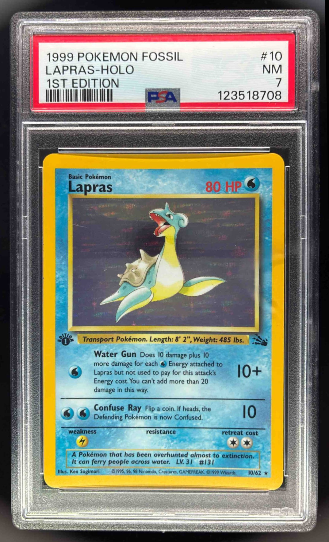 1999 Pokemon Fossil 1st Edition #10/62 Lapras PSA 7