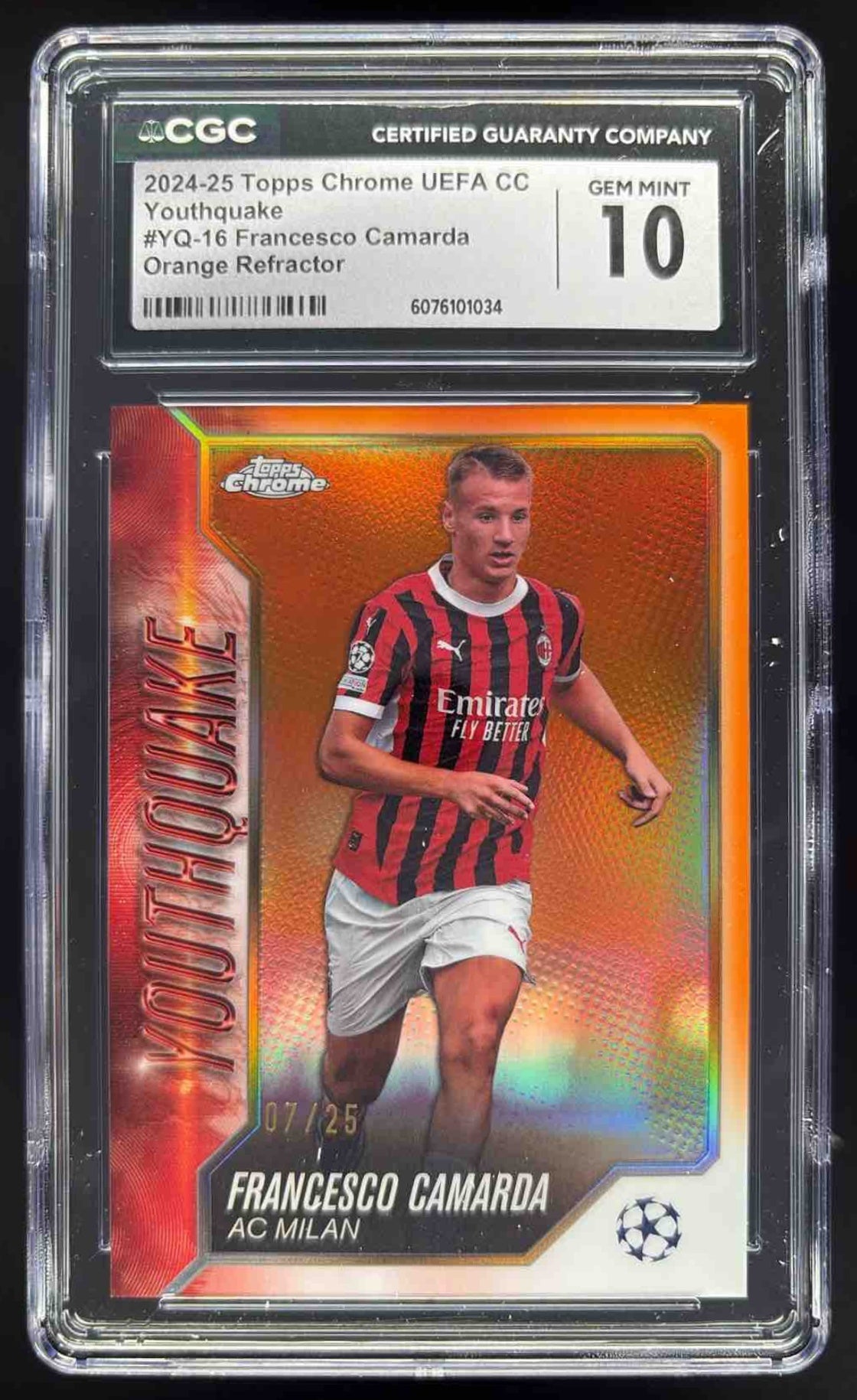 2024-25 Topps Chrome Youthquake Orange Refractor Francesco Camarda /25 CGC 10
