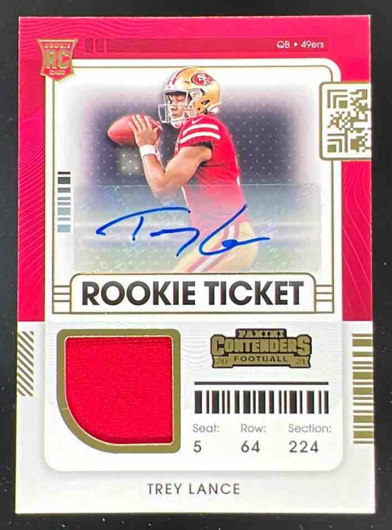 2021 Contenders Rookie Ticket Swatches #RTS-TLA Trey Lance RC SSP Auto