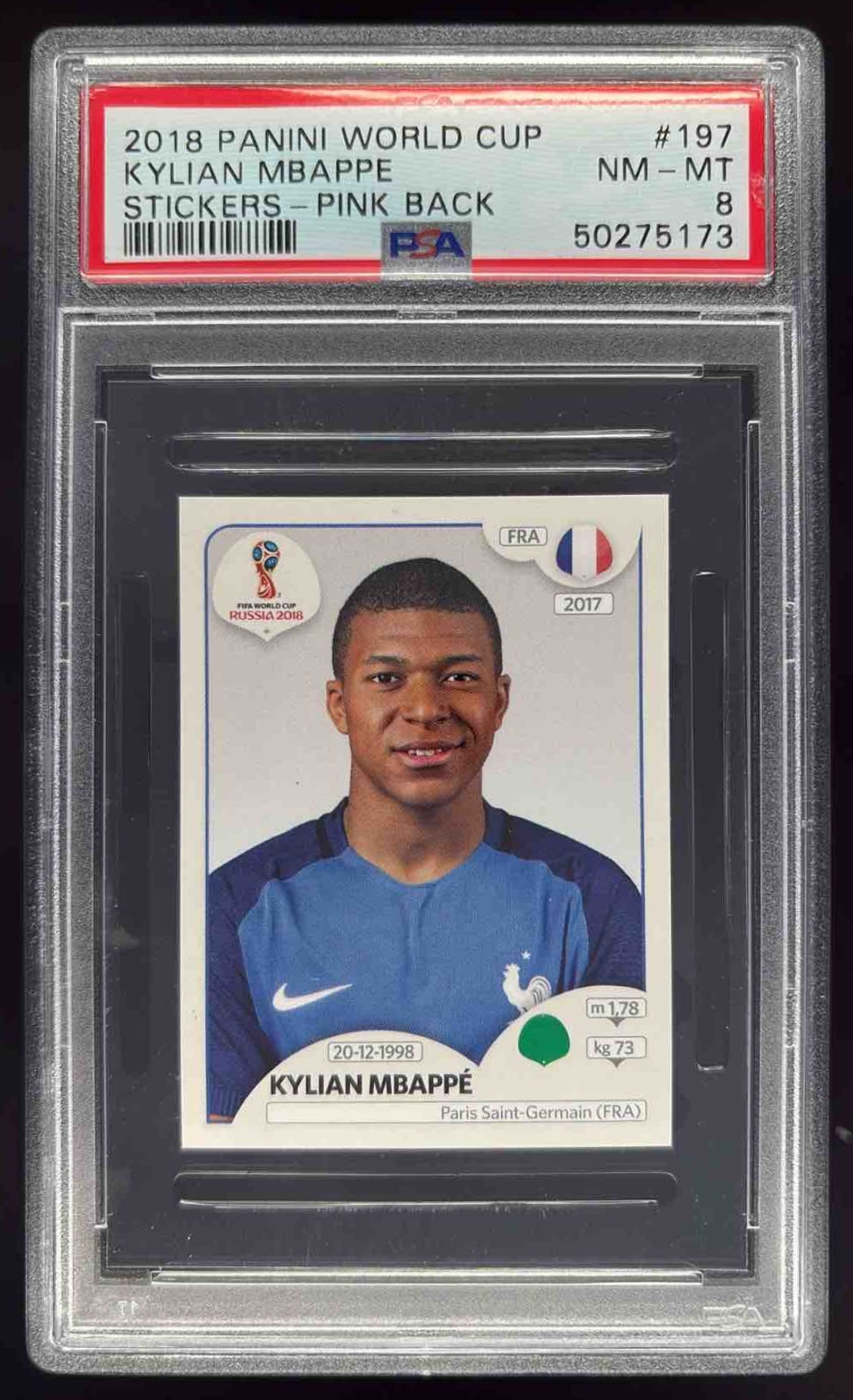 2018 Panini FIFA World Cup Russia Stickers Pink Backs #197 Kylian Mbappe PSA 8