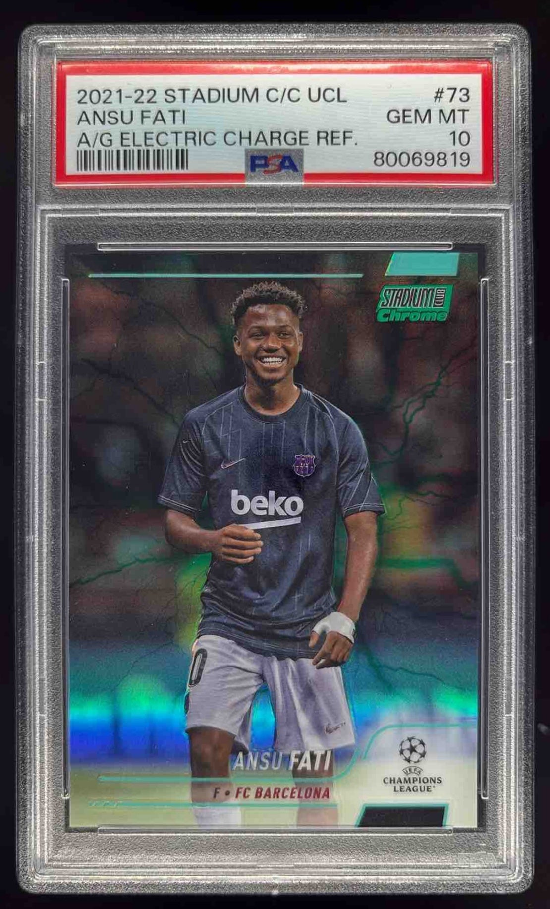 2021-22 Stadium Club Chrome Aqua Green Electric Charge Ansu Fati /199 PSA 10