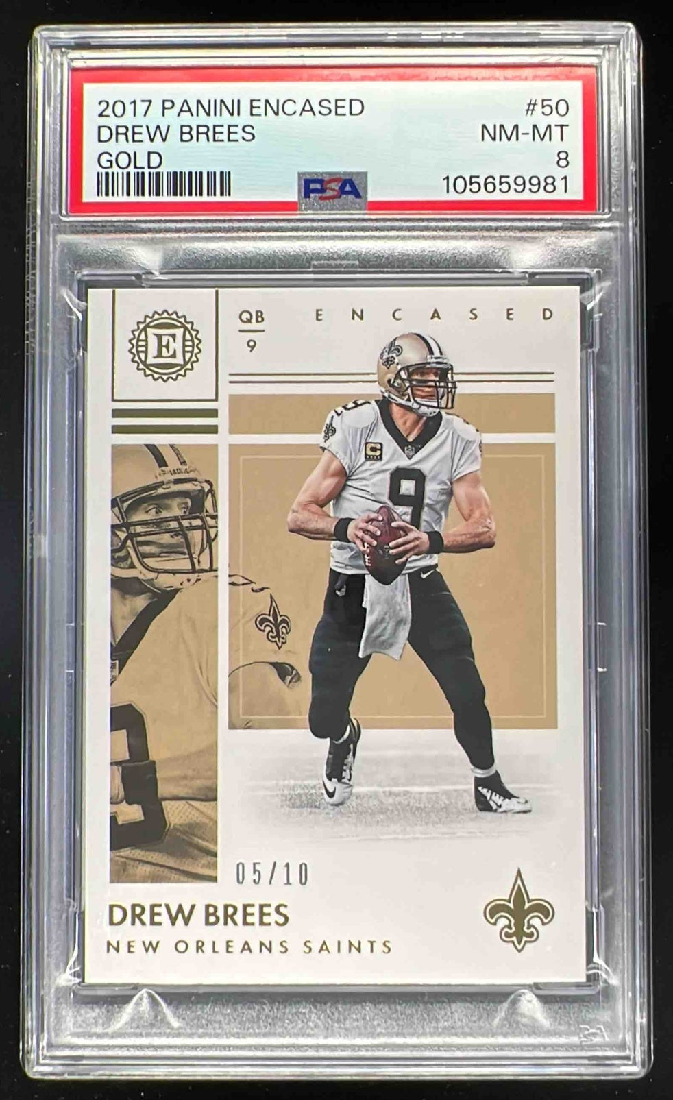 2017 Panini Encased Gold #50 Drew Brees /10 PSA 8