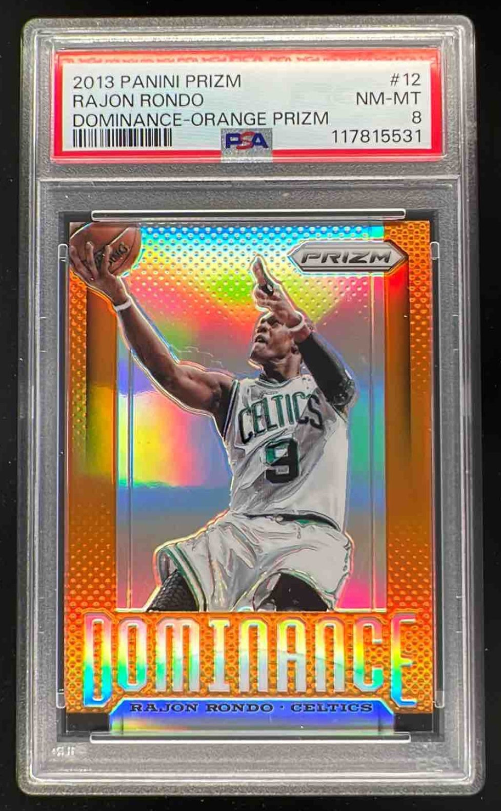 2013-14 Panini Prizm Dominance Prizms Orange #12 Rajon Rondo /60 PSA 8