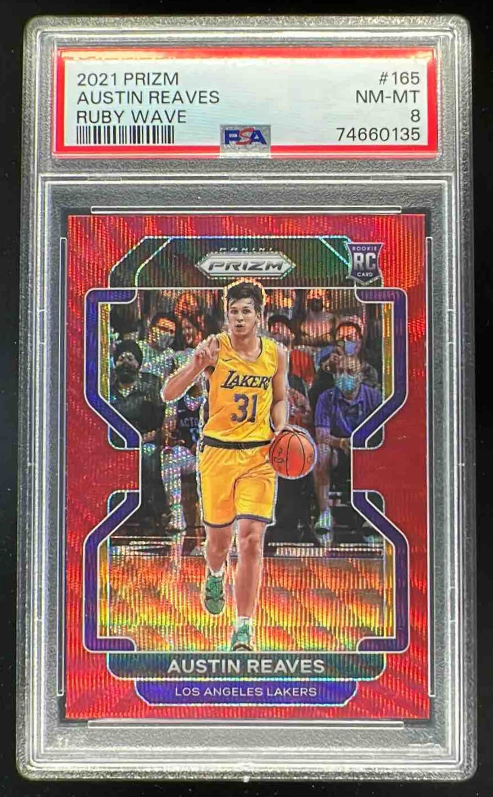 2021-22 Panini Prizm Ruby Wave #165 Austin Reaves RC PSA 8