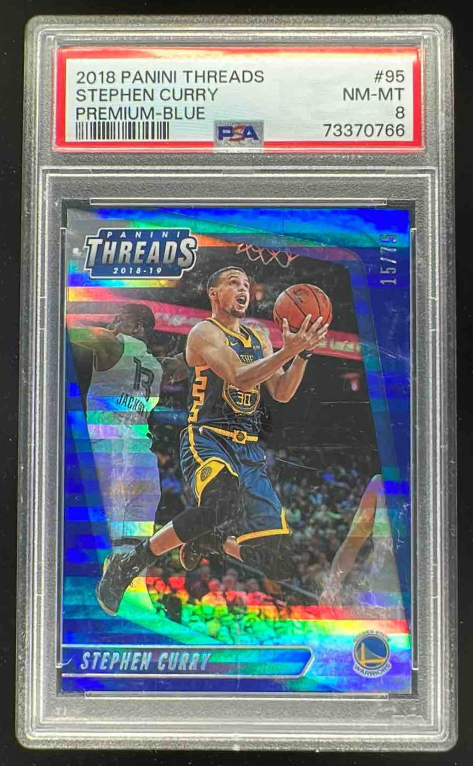 2018-19 Panini Threads Premium Blue #95 Stephen Curry /75 PSA 8