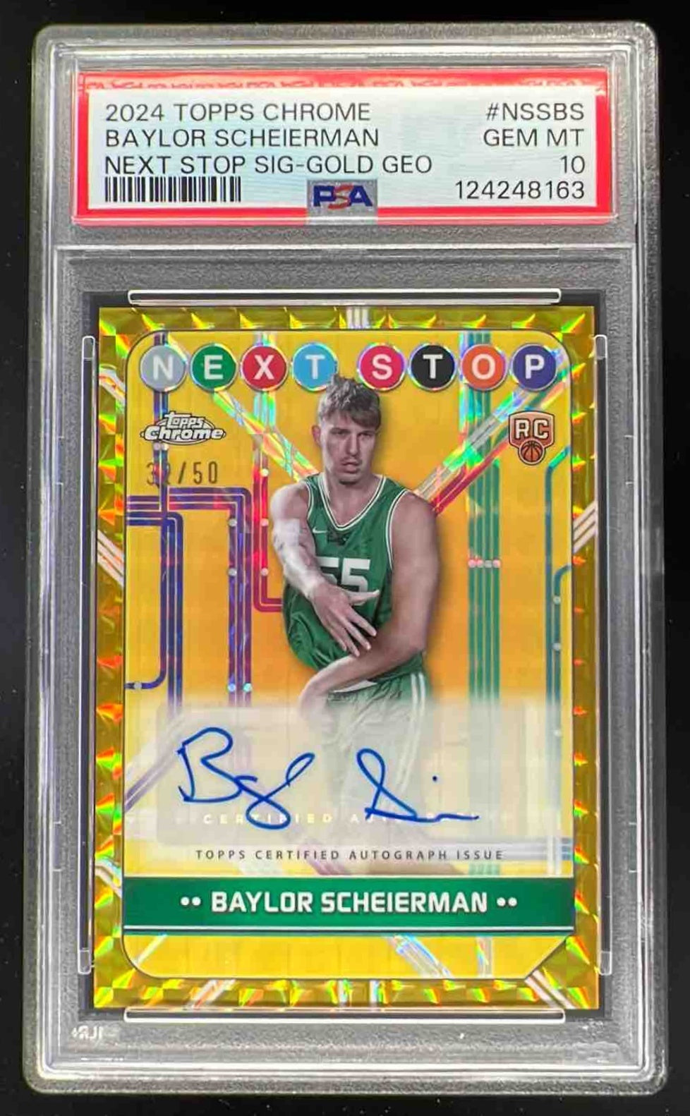 2024 Topps Chrome Next Stop Gold Geometric Baylor Scheierman RC Auto /50 PSA 10