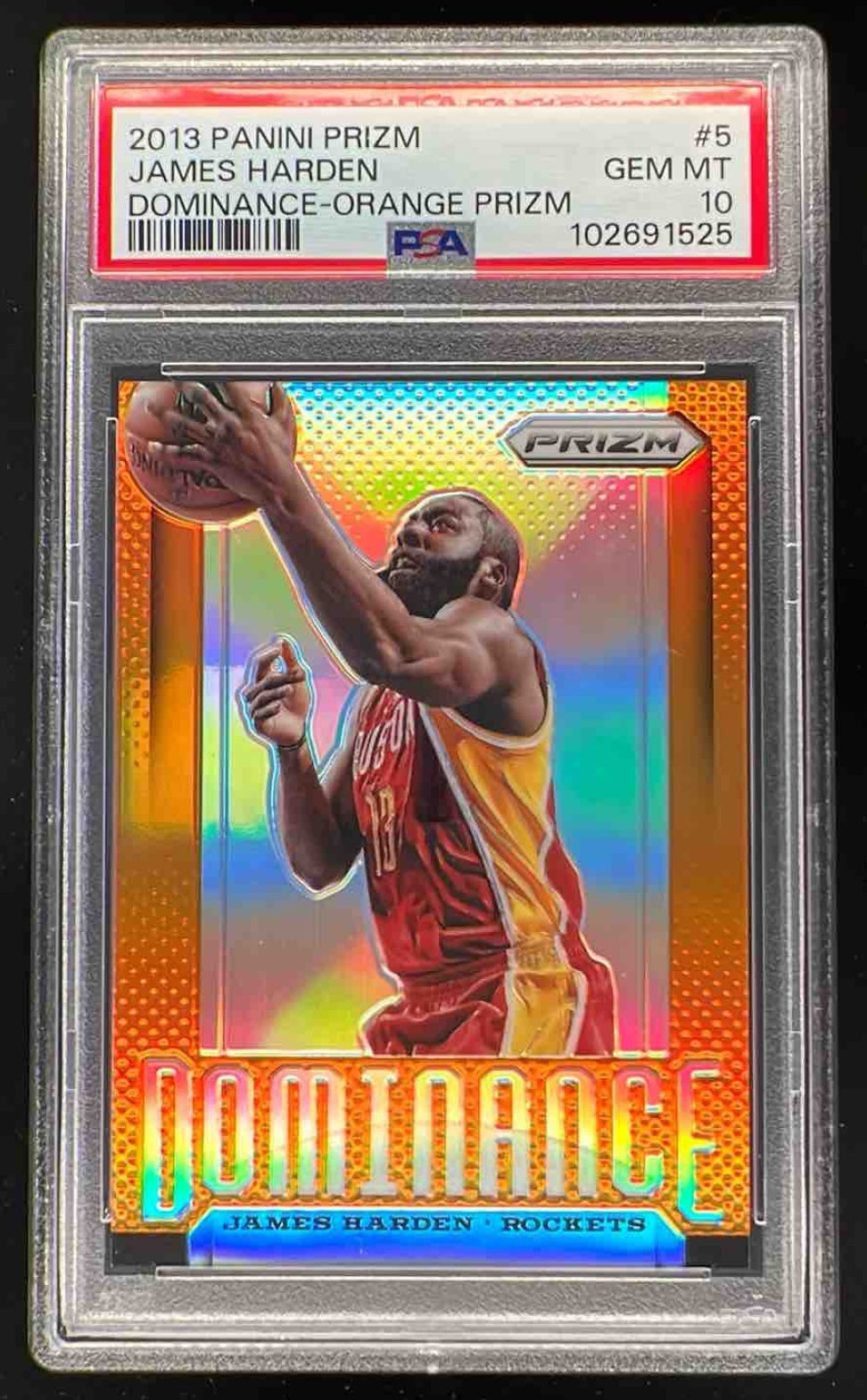 2013-14 Panini Prizm Dominance Prizms Orange #5 James Harden /60 PSA 10