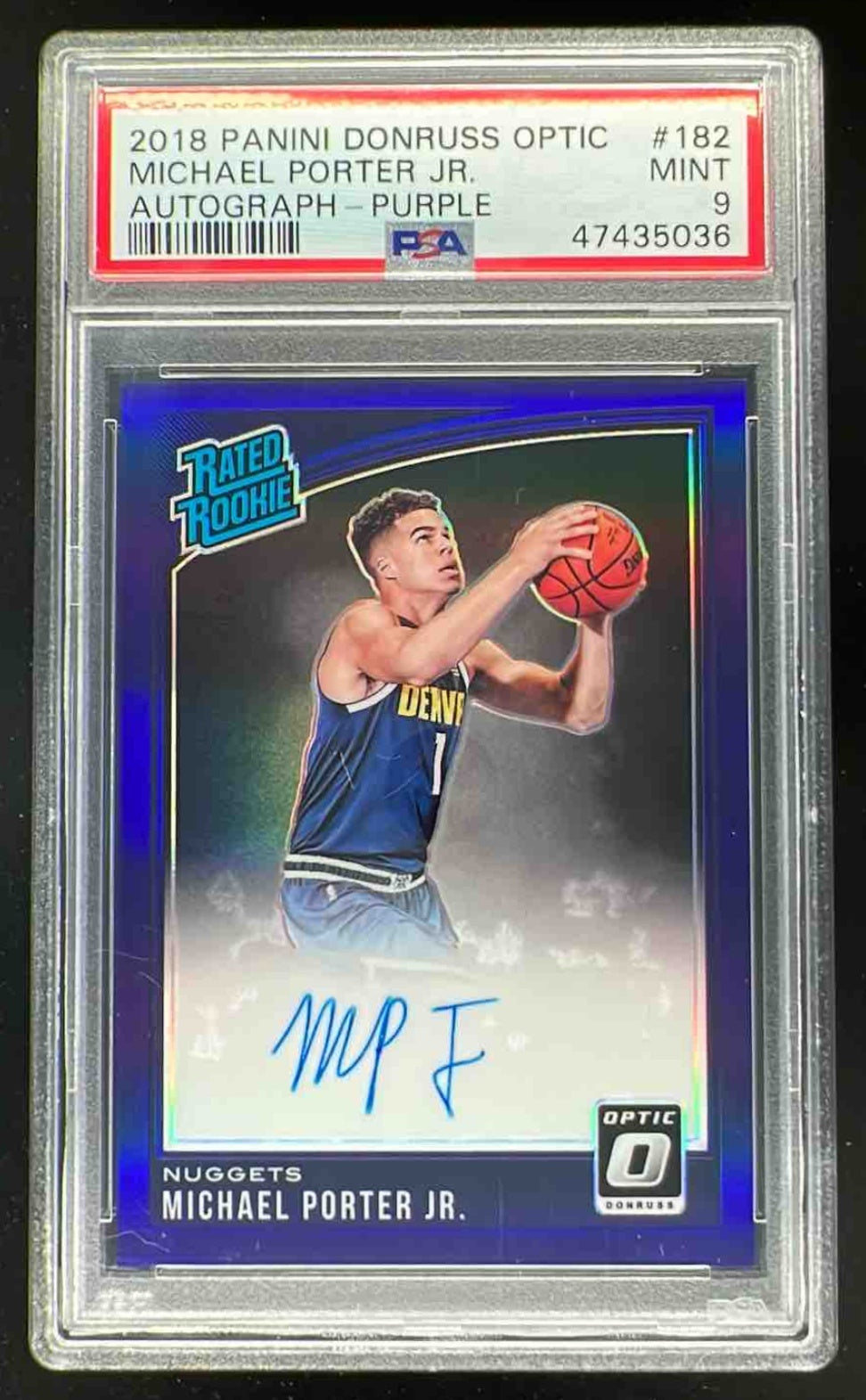 2018-19 Donruss Optic Rated Rookies Purple #182 Michael Porter Jr. RC Auto PSA 9