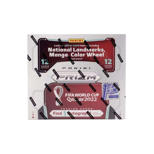 PRODUCT HIGHLIGHTS The world’s greatest soccer tournament is here again! Prizm returns for FIFA World Cup Qatar 2022TM featuring all 32 qualified teams. Unwrap tons of color in every box! On average, find 12 Prizms per box, 4 of which are serial-numbered. Overall, find 1 autograph, 4 #’d Prizms, 2 Silver Prizms, 6 other Prizms, 10 Inserts and 2 Silver Inserts per box, on average. Look for the return of the short-printed National Landmarks Insert, with custom artwork of a star player and hallmarks of each qualified nation. New- for-2022 short-printed inserts are Manga, Color Wheel, and National Pride. Find Autographs of stars past-and-present from the field of 32, including Kylian Mbappé. Also be on the hunt for short printed Dual Signatures, highlighting teammates and compatriots.