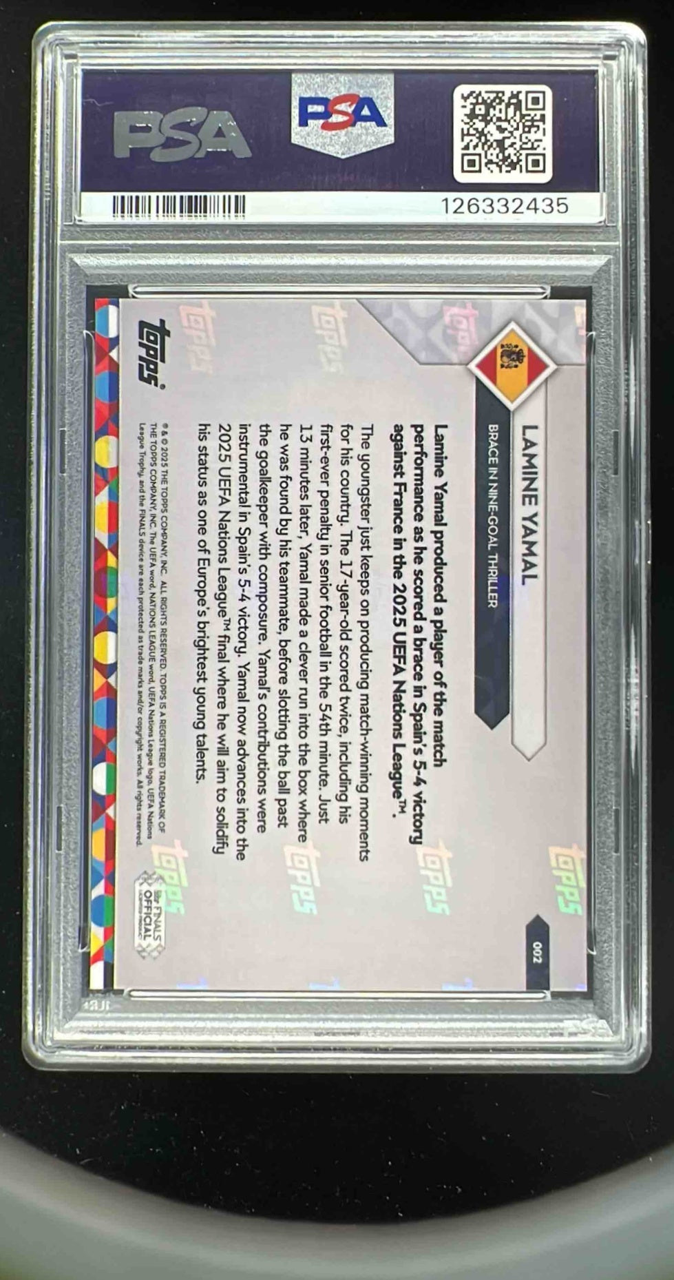 2025 Topps Now UEFA Nations League #2 Lamine Yamal PSA 10