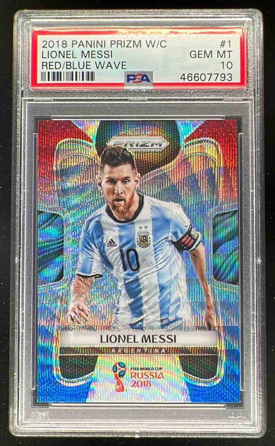 2018 Panini Prizm World Cup Red & Blue Wave Prizm #1 Lionel Messi PSA 10