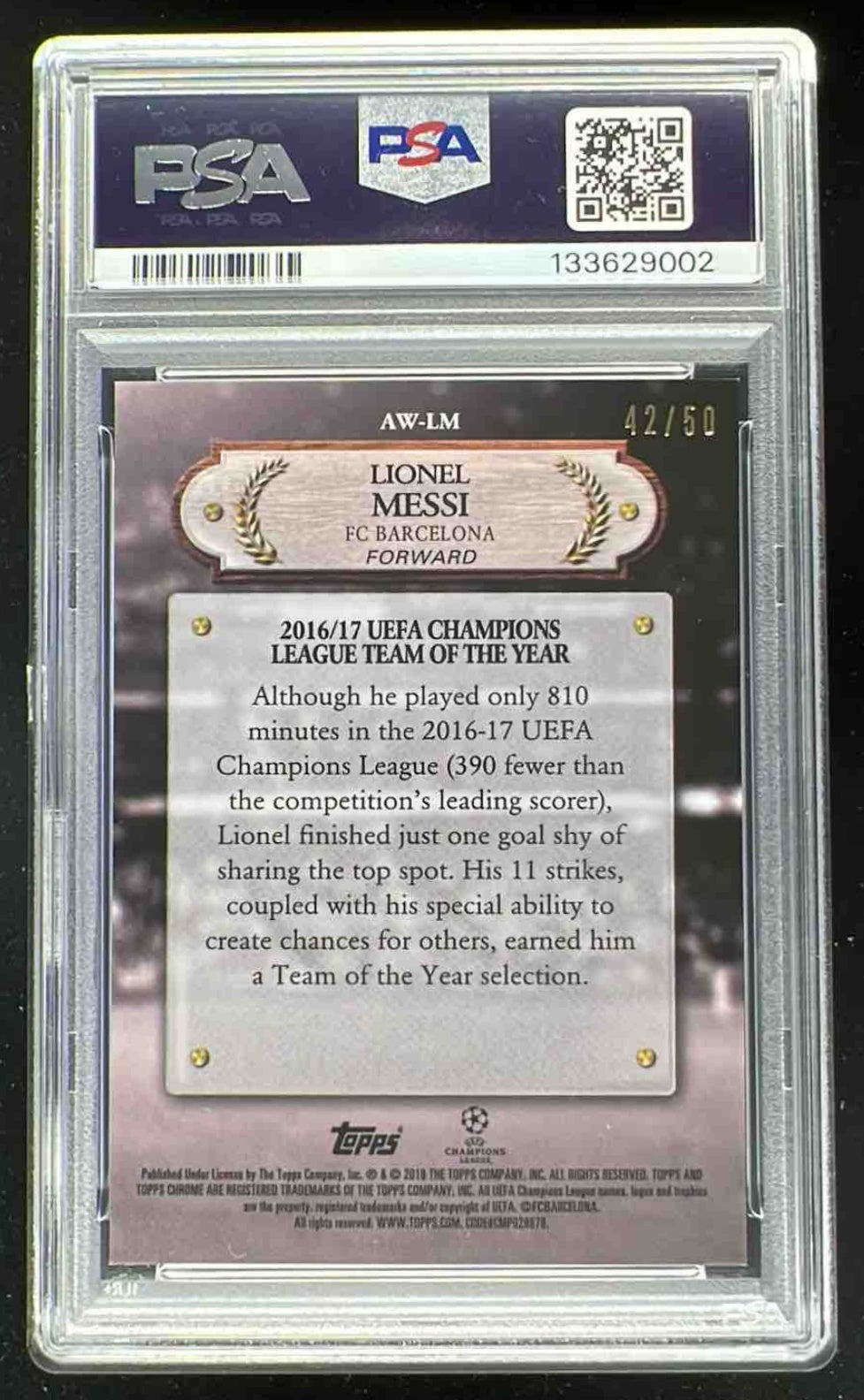2017 Topps Chrome UEFA Award Winners Gold #AW-LM Lionel Messi /50 PSA 10