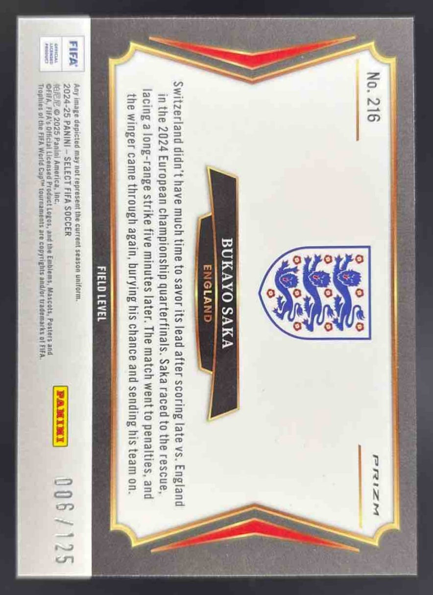 2024-25 Panini Select FIFA Field Orange Fluorescent #216 Bukayo Saka /125