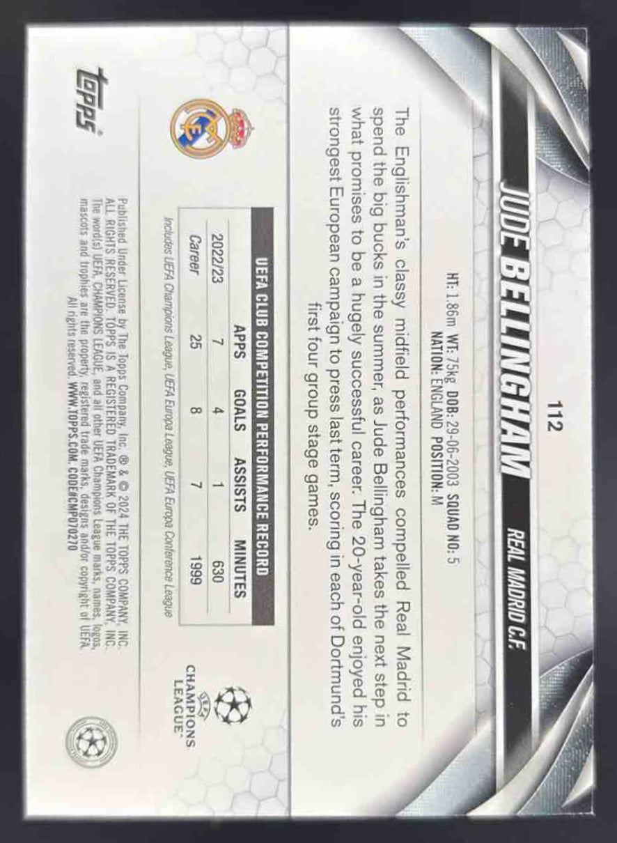 2023 Topps Chrome UEFA Club Competitions #112b Jude Bellingham SP VAR