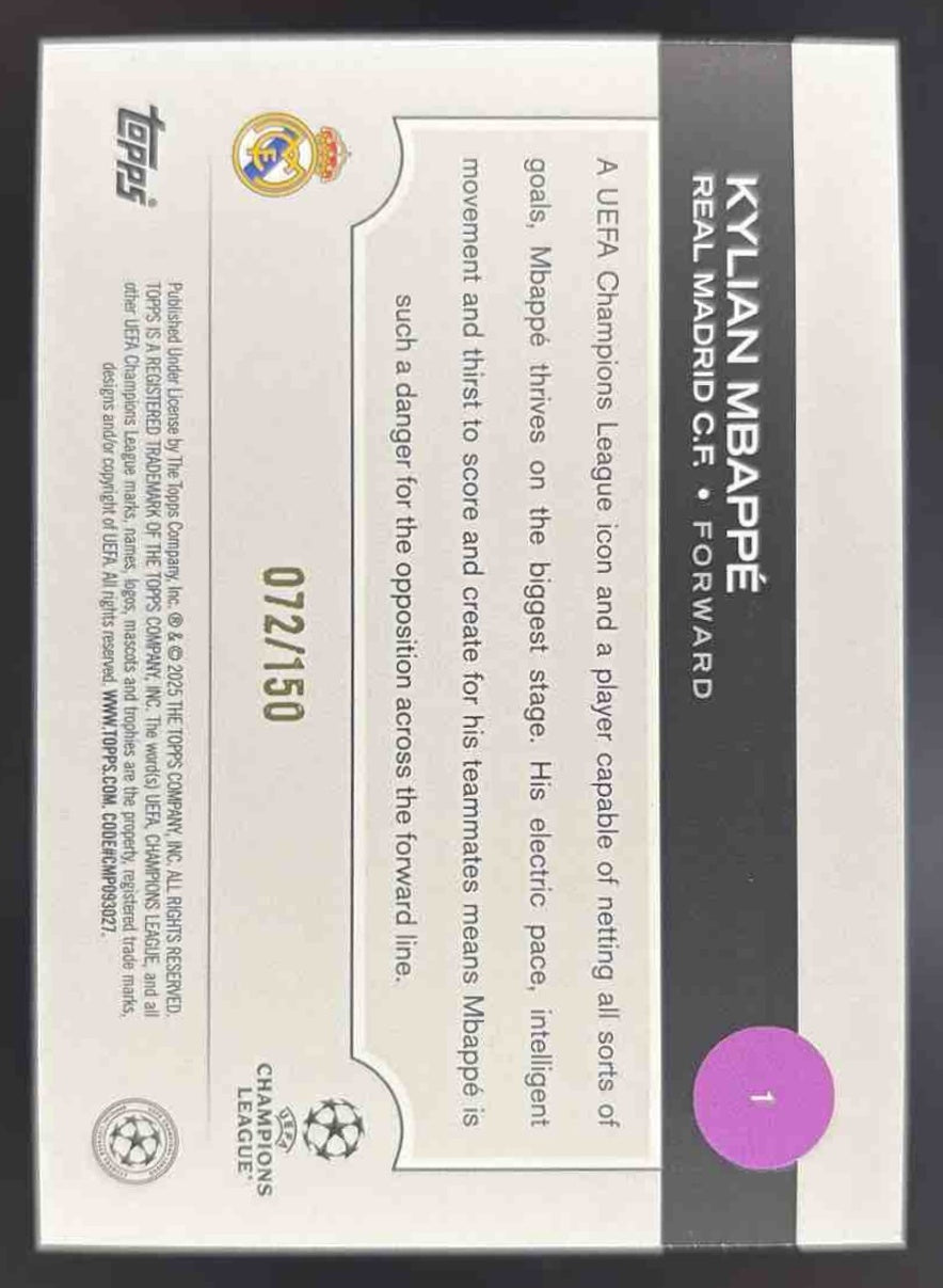 2024 Topps UEFA Club Competitions Black and White Icy Foil #1 Kylian Mbappe /150
