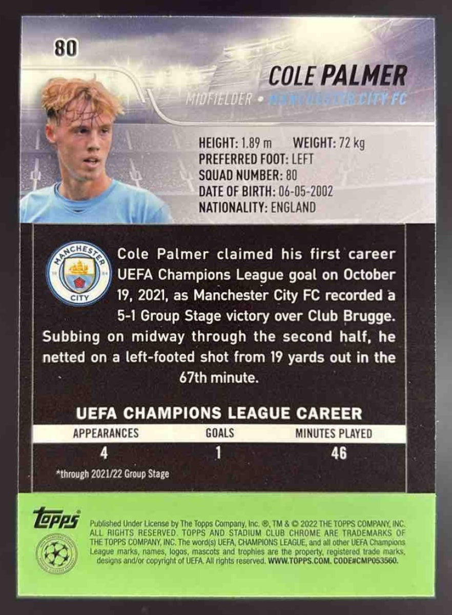 2021 Topps Stadium Club Chrome Pink Red Electric Charge Refractor Cole Palmer RC