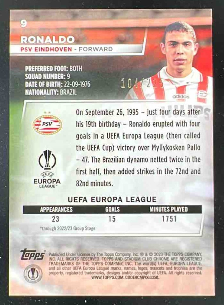 2022 Stadium Club Chrome Aqua Green Electric Charge Refractor #9 Ronaldo /225